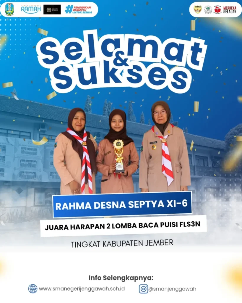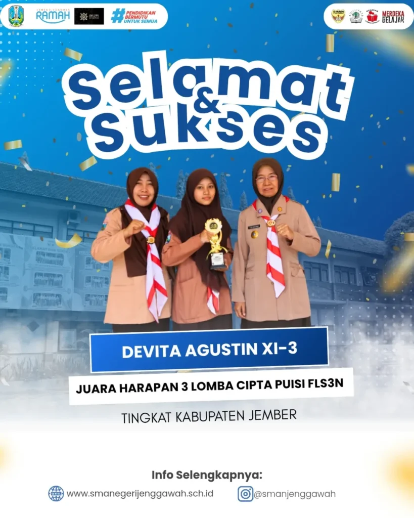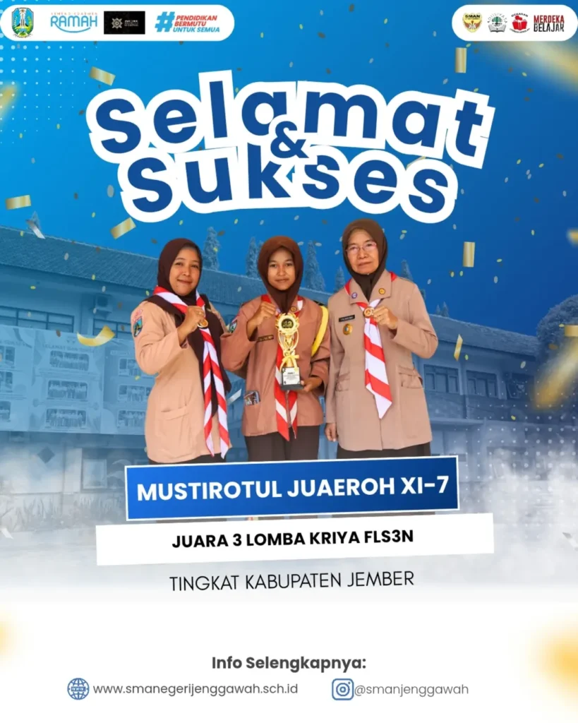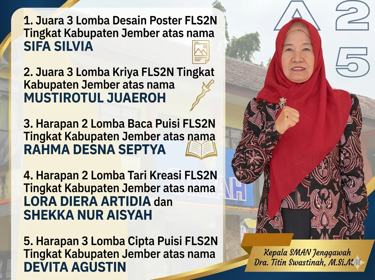 Oleh sebab itu, pembinaan rutin melalui ekstrakurikuler seni akan terus kami tingkatkan kualitasnya secara berkelanjutan. Keberhasilan di ajang FLS2N SMAN Jenggawah tahun 2025 ini menegaskan bahwa sekolah selalu serius dalam mengembangkan potensi non-akademik siswa. Akhirnya, mari kita dukung terus putra-putri terbaik bangsa agar mereka mampu meraih prestasi yang lebih tinggi lagi, termasuk kesempatan mewakili Jember di tingkat provinsi.