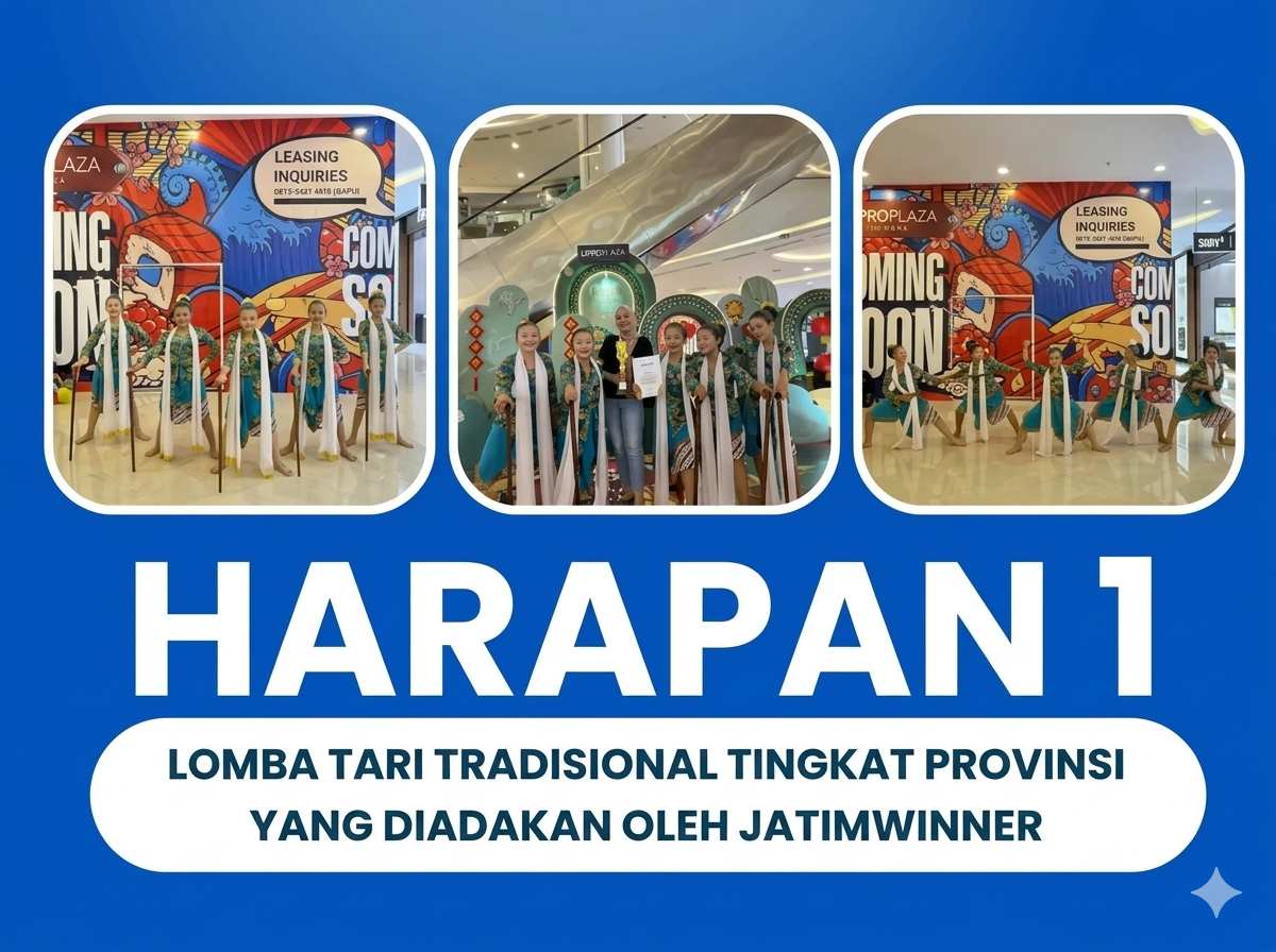 Tim tari perwakilan sekolah kita berhasil menyabet gelar Juara Harapan 1. Prestasi ini sangat membanggakan karena persaingan di tingkat Jawa Timur sangatlah ketat. Berikut adalah nama-nama siswa berprestasi yang telah mengharumkan nama sekolah: